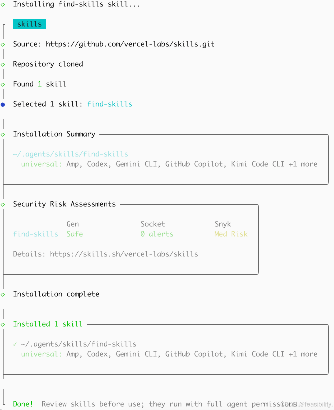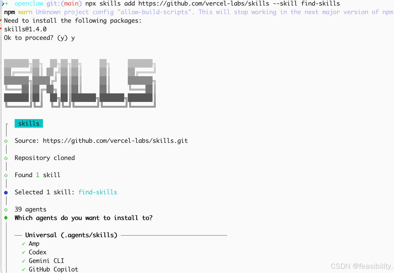 执行npx skills add https://github.com/vercel-labs/skills --skill find-skills