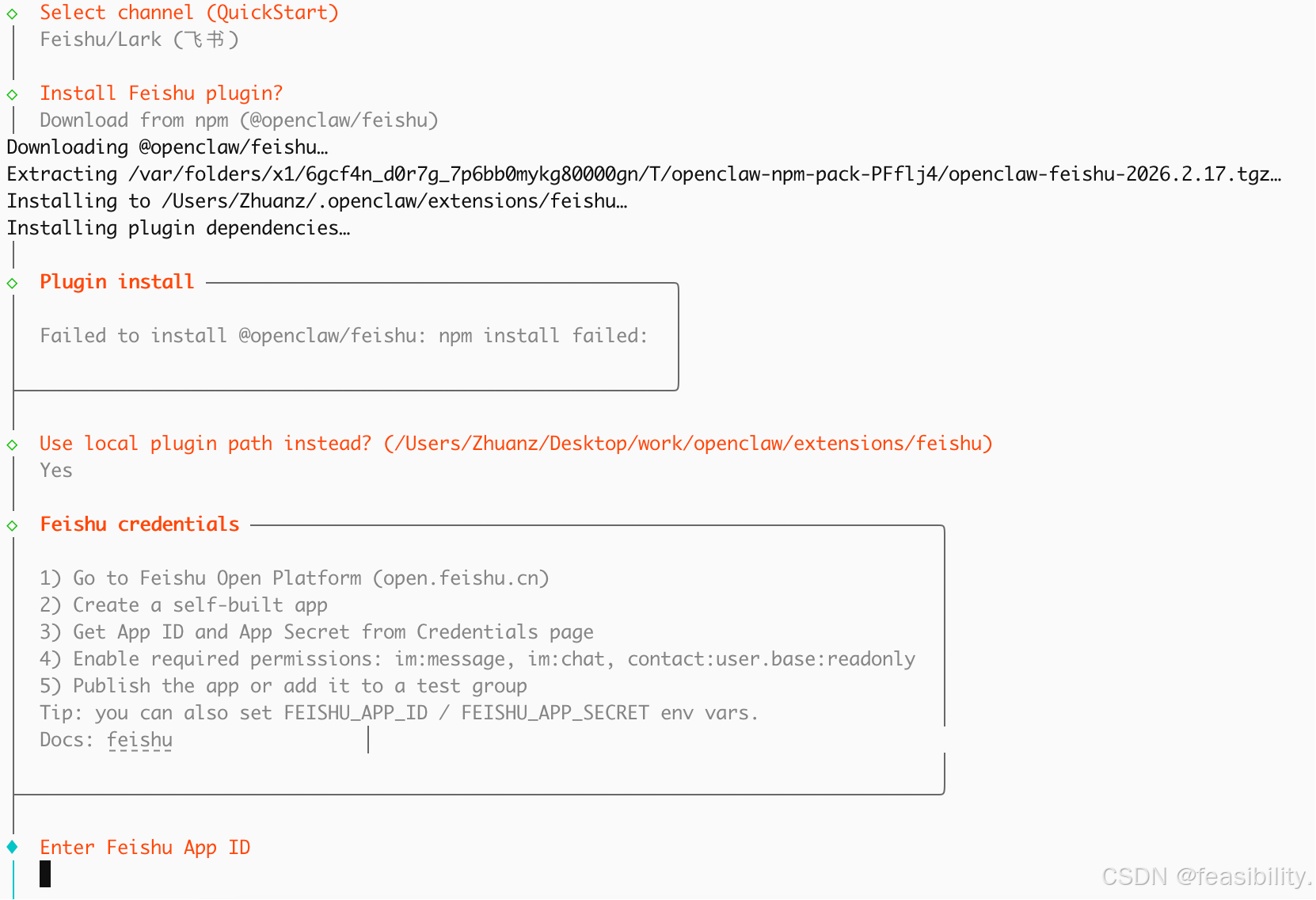 忘记复制的话,回到凭证与基础信息,把你的APP ID和APP Secret粘贴到openclaw