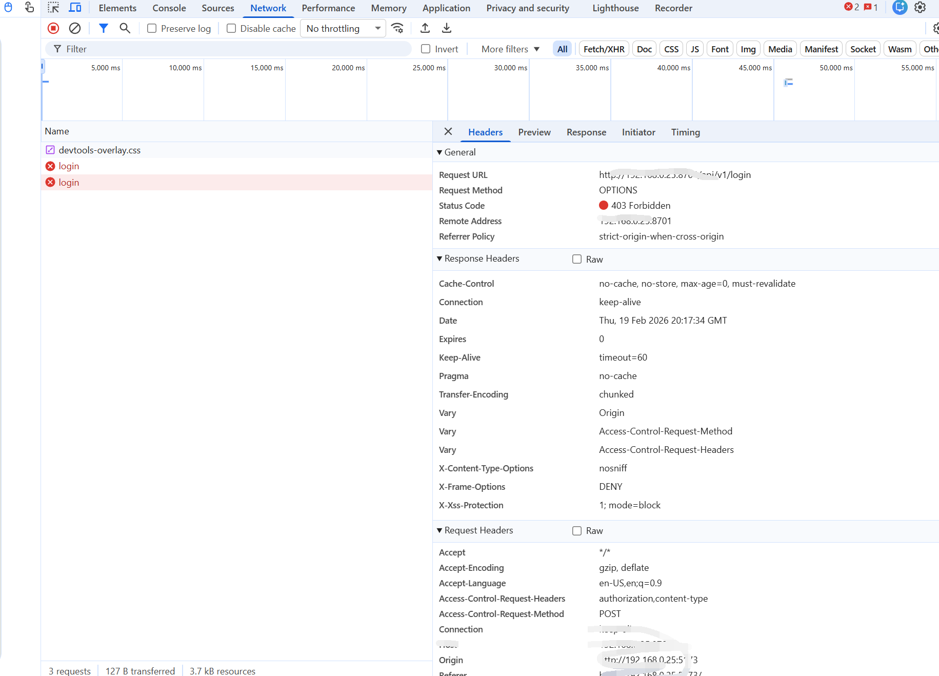 Network-> 点请求 ->Headers / Payload / ResponseConsole看报错日志(CORS、Failed to fetch 等)