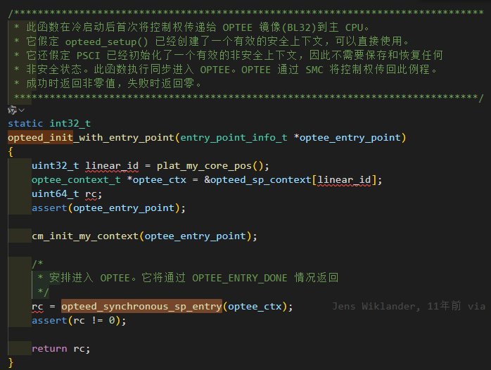 - BL31 的 opteed_smc_handler() 函数处理 TEESMC_OPTEE_RETURN_FROM_INIT 请求