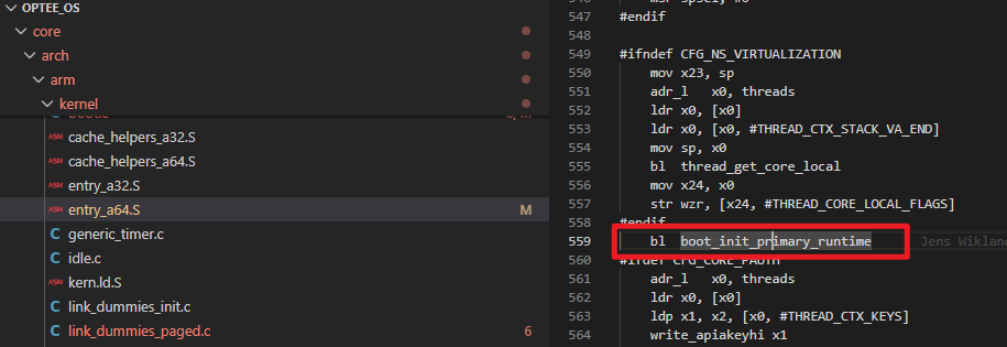 - CPU 从 EL3 退出到 Secure EL1,PC 跳转到 optee_os 的 _start 标签