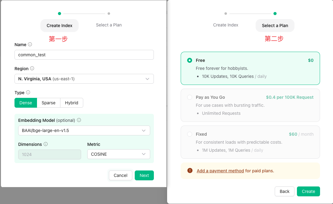 进入Upstash Vector 页面后,点击Create Vector Index,显示如下: