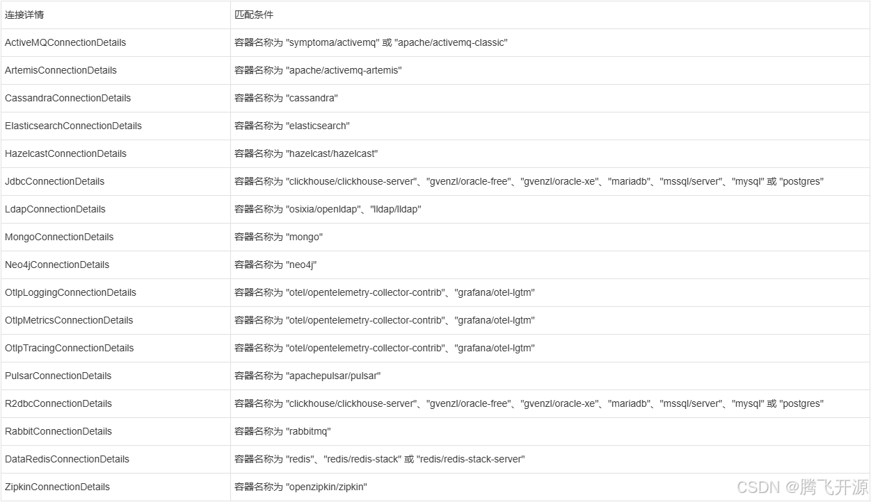 当使用 Spring Boot 的 Docker Compose 支持时,会建立到容器映射端口的服务连接。