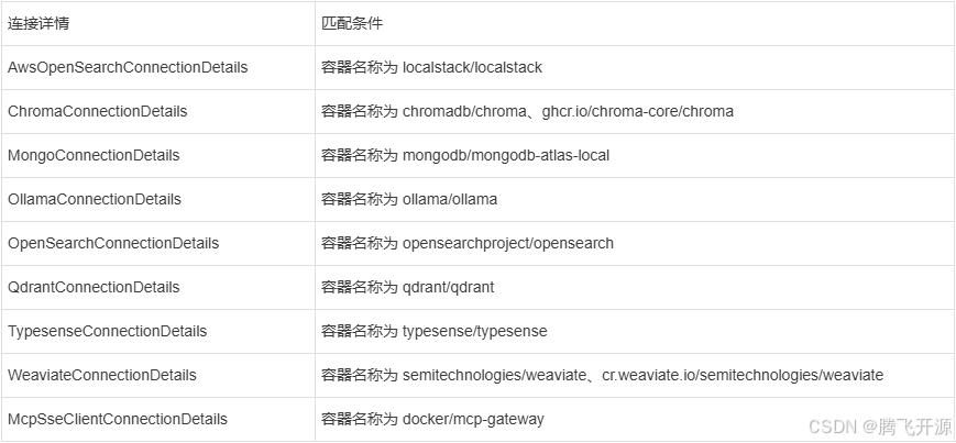 spring-ai-spring-boot-docker-compose 模块提供了以下服务连接工厂: