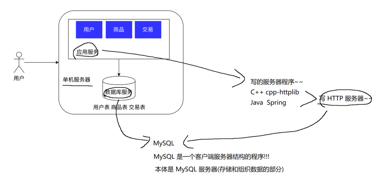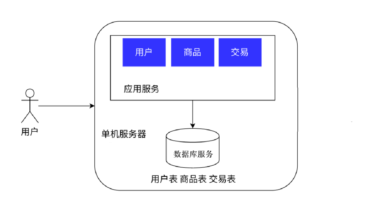 只有一台服务器,负责所有业务与数据存储。