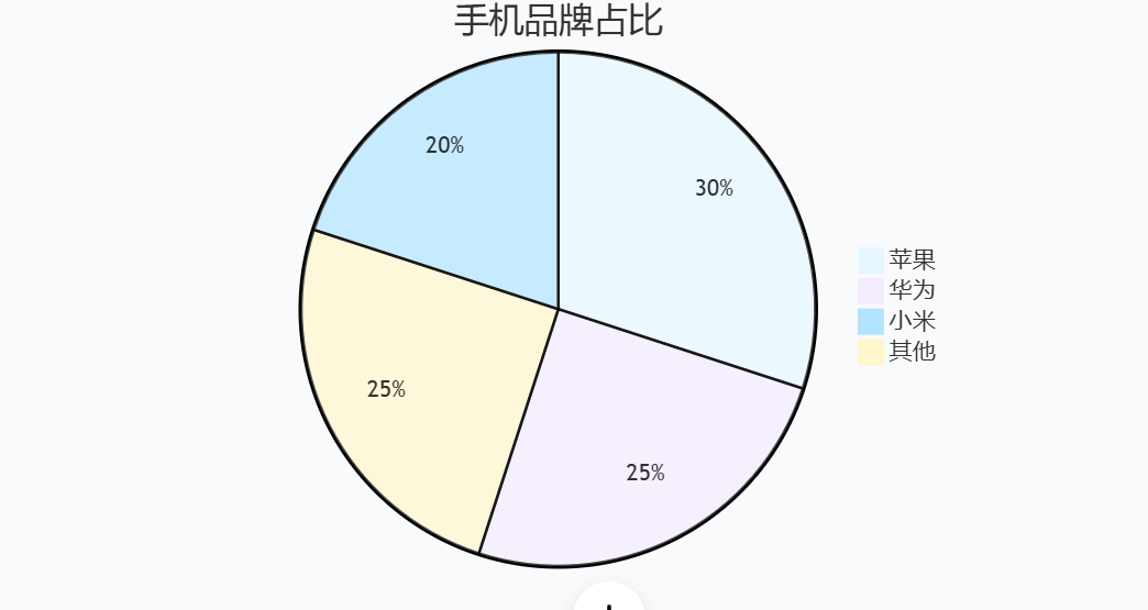 用途:展示数据占比(如品牌分布、预算分配)。示例代码: