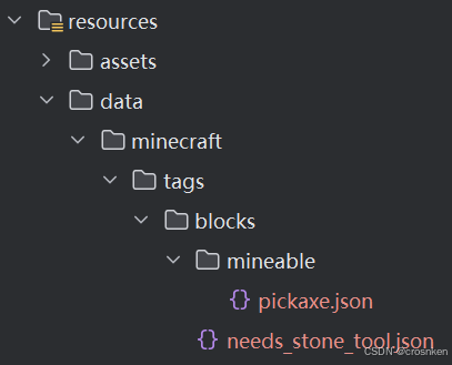 目前我mod中pickaxe.json和needs_stone_tool.json内容是一样的。