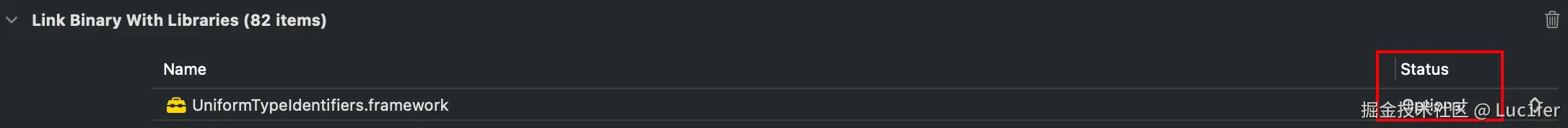 知道了问题然后解决方案就很多了,首先我们现在build phases中设置对于UniformTypeIdentifiers是weak,也就是可选依赖。