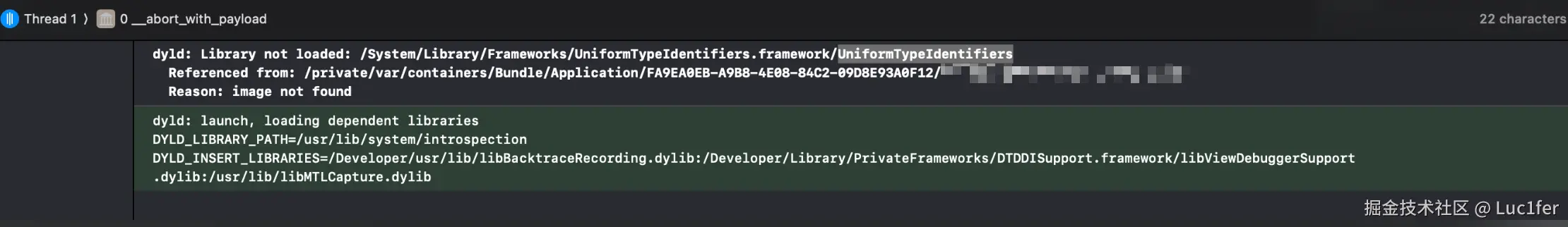当你在iOS13上运行时会发现报错,内容如上图所示,在低版本中,dyld在启动我们的程序时找不到对应的动态库。