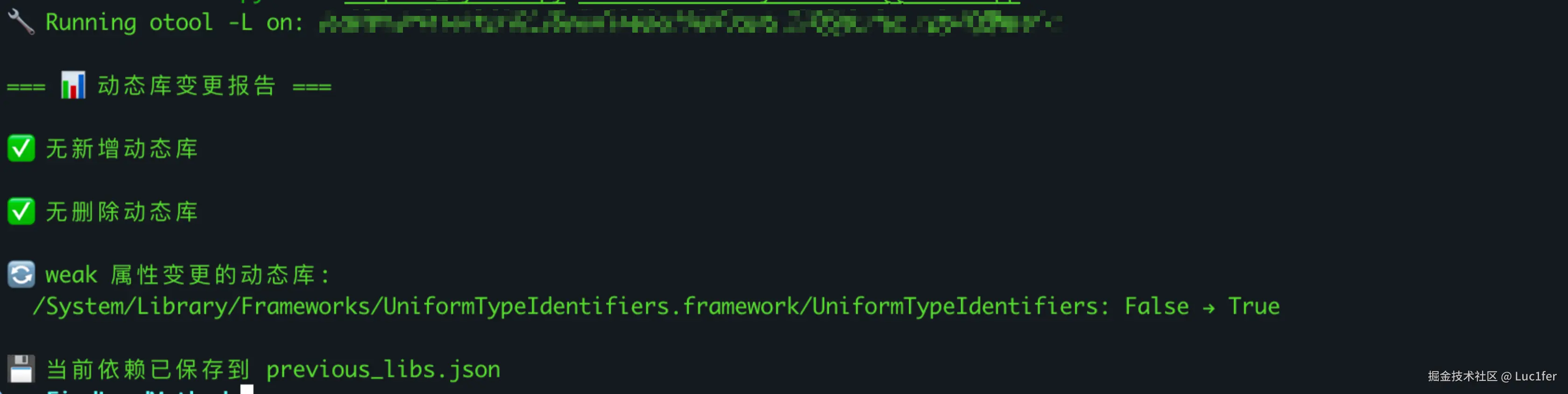 我们可以通过脚本在每次构建之后分析当前的动态库依赖,如果发现新增动态库或者动态库的依赖方式发生变化。则告警。