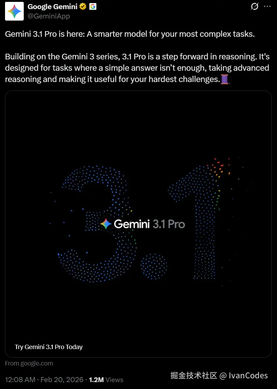 今天凌晨,谷歌发布了新一代模型------Gemini 3.1 Pro
