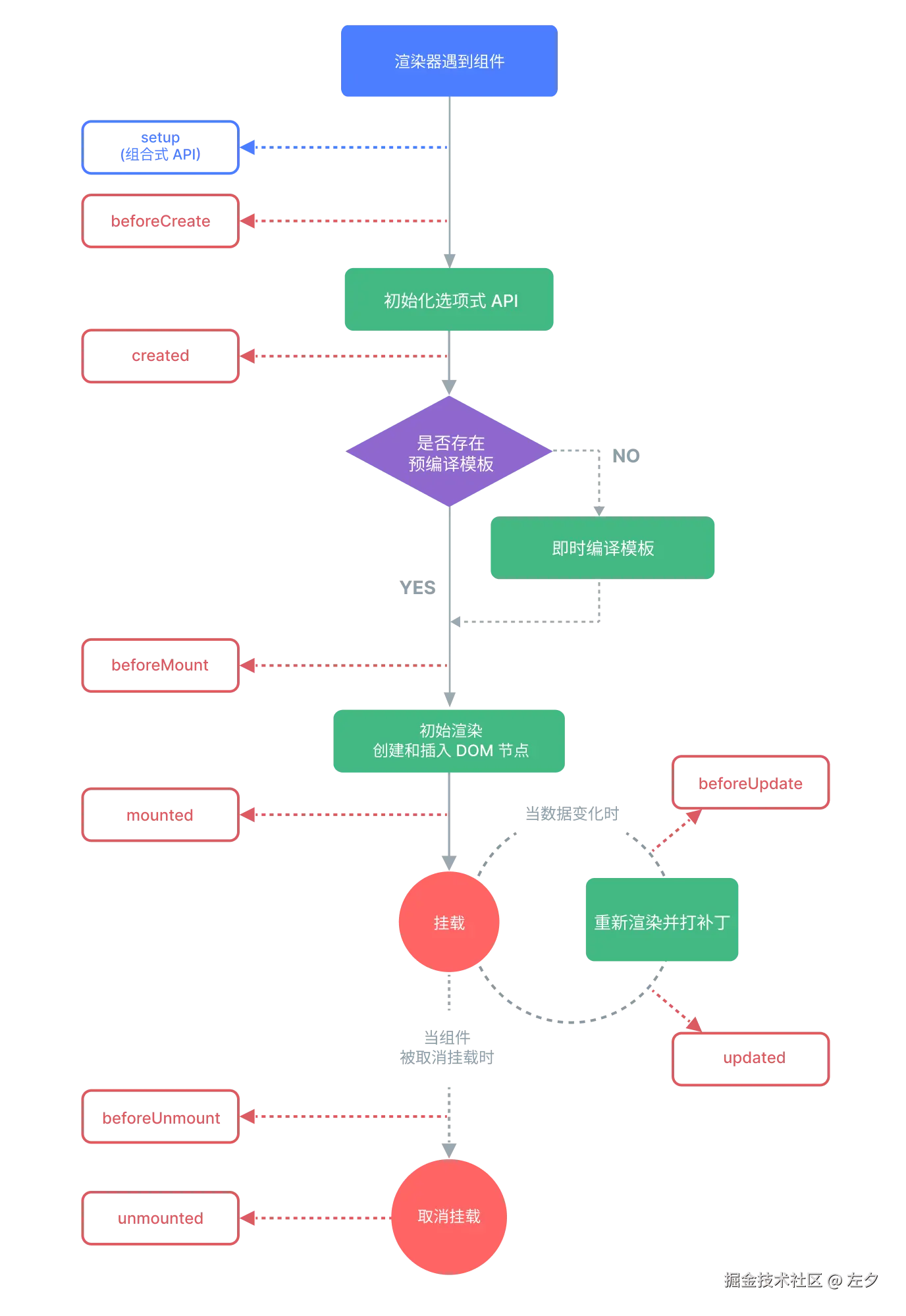| 卸载 | beforeDestroy | beforeUnmount | onBeforeUnmount | 清理资源 |