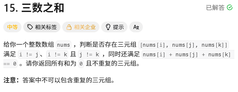 与两数之和稍微不同的是,题目中要求找到所有**【不重复】**的三元组。那我们可以利用在两数之和为s那里的双指针思想: