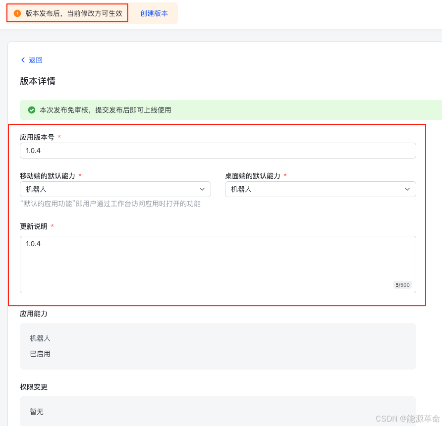 (2)有任何修改和配置的修改,都需要创建新的版本进行发布;
