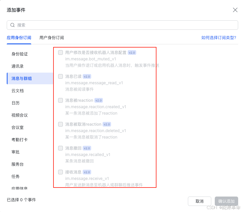 订阅方式选择【使用长连接接收事件】