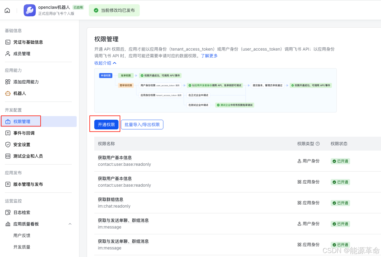 点击【下一步,确认新增权限】即可开通所需要的权限。