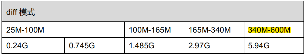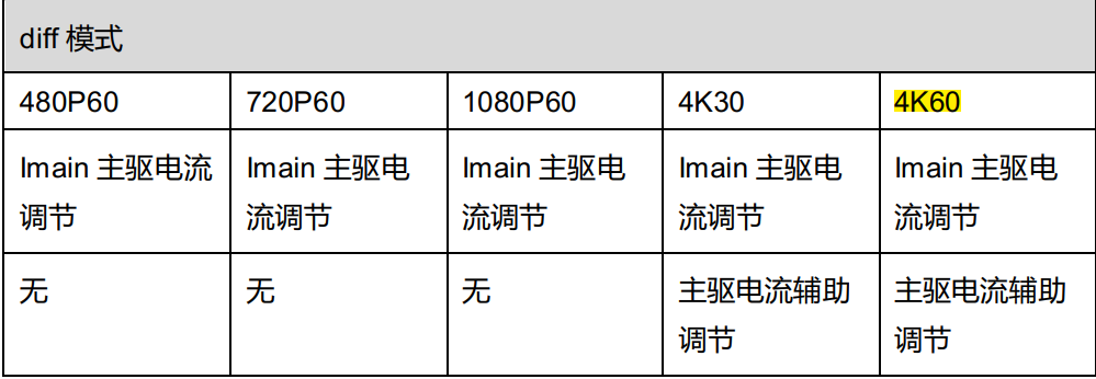 主驱电流调节(即 Vswing 调节),主要作用是调整输出 Vswing 的大小;Imain 越大,差分 swing 幅度越大。信号速率越高,通道损耗越大,因此对于4k30 以上的速率需要根据单板走线长度,适当调整主驱电流。