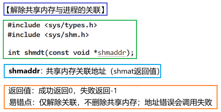 shmdt()分离共享内存,并可通过shmctl()删除该段。