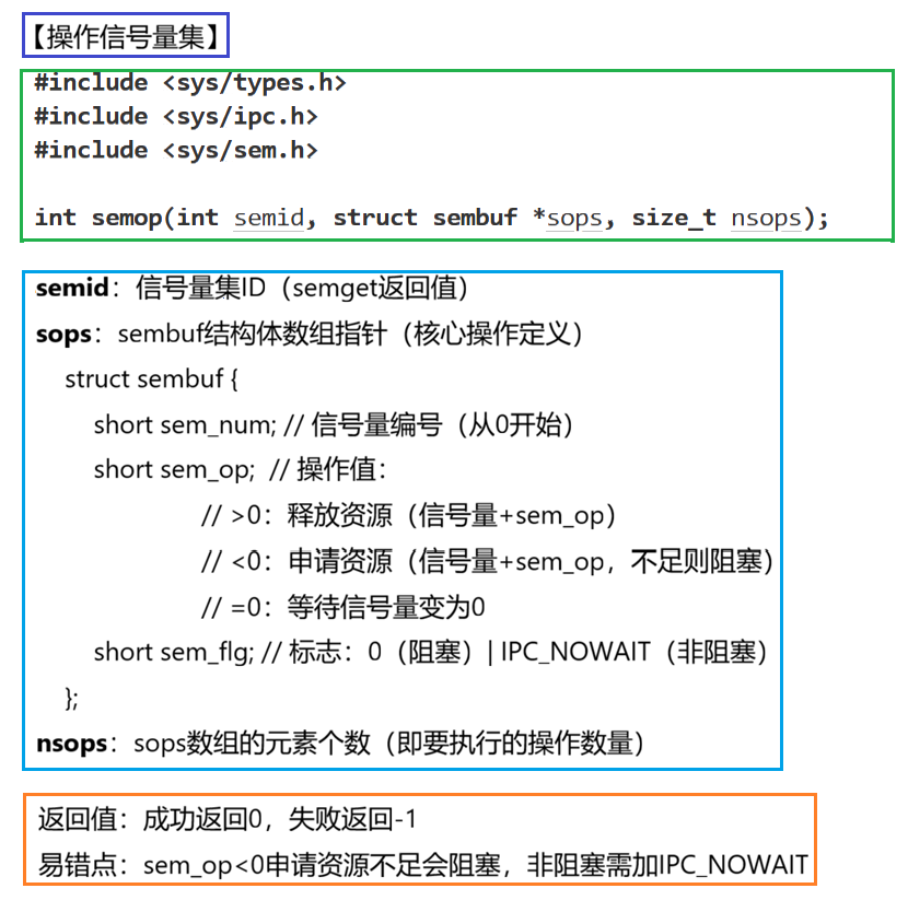semget()创建或获取信号量集。 - 初始化信号量值(通过