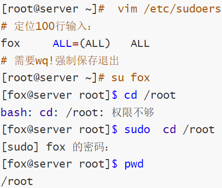 执行 visudo 或 vim /etc/sudoers