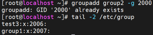 向系统中添加一个组ID为2000,组名为 group2 的新组: