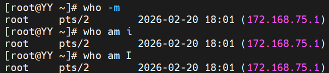 作用:显示目前登录到系统的用户,会从 /var/run/utmp 文件来获取信息