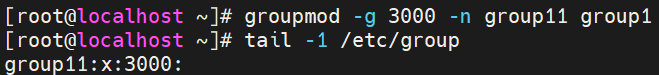 将组 group1 的 GID 修改为3000,组名修改为 group11:
