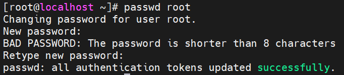 若显示密码少于8个字符时,再回车重新输入一样的密码即可成功:
