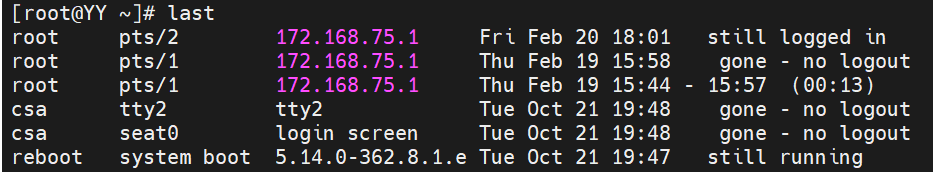 2.last 命令