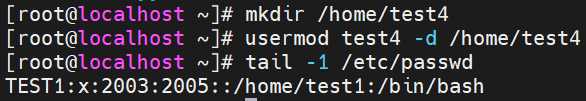 将上例账户 test4 的家目录移至 /home/test4 目录下: