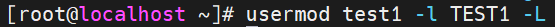 将用户 test1 的名称修改为 TEST1 ,并暂停使用该账号: