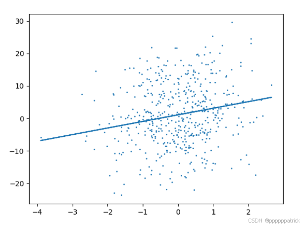 # 拟合直线:y = x*w_0[idx] + b_0(转成numpy才能画图)