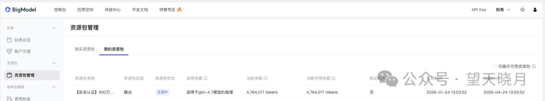 现在智谱清言对实名认证的用户赠送了资源包,这波羊毛必须薅,而且如果要使用GLM的API Key必须要实名认证!
