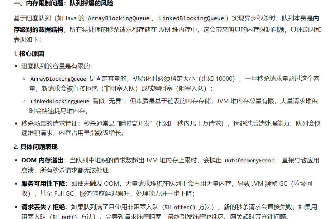 但 Lua 脚本管不到后续的异步下单环节,因为异步下单是 "Redis 校验通过后" 的独立操作,会面临以下「Lua 脚本覆盖不到的风险」: