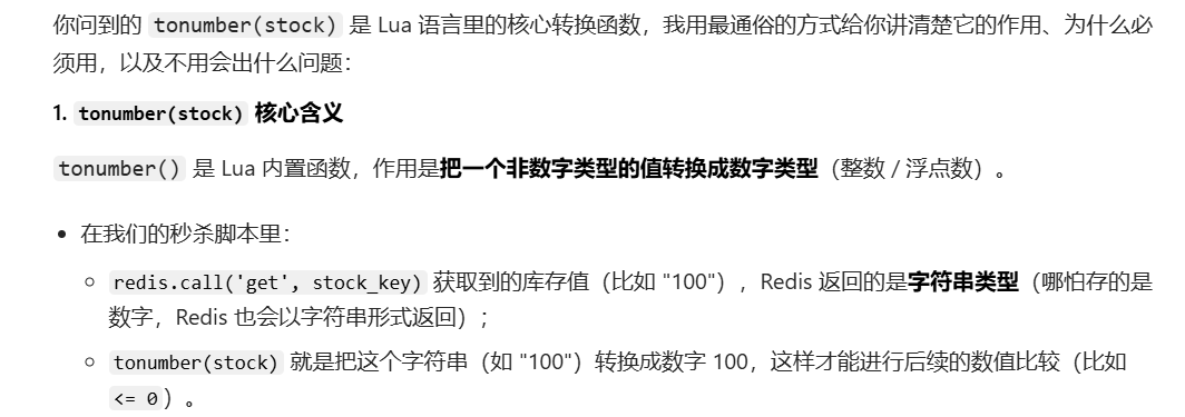 if(tonumber(redis.call('get', stockKey)) <= 0) then