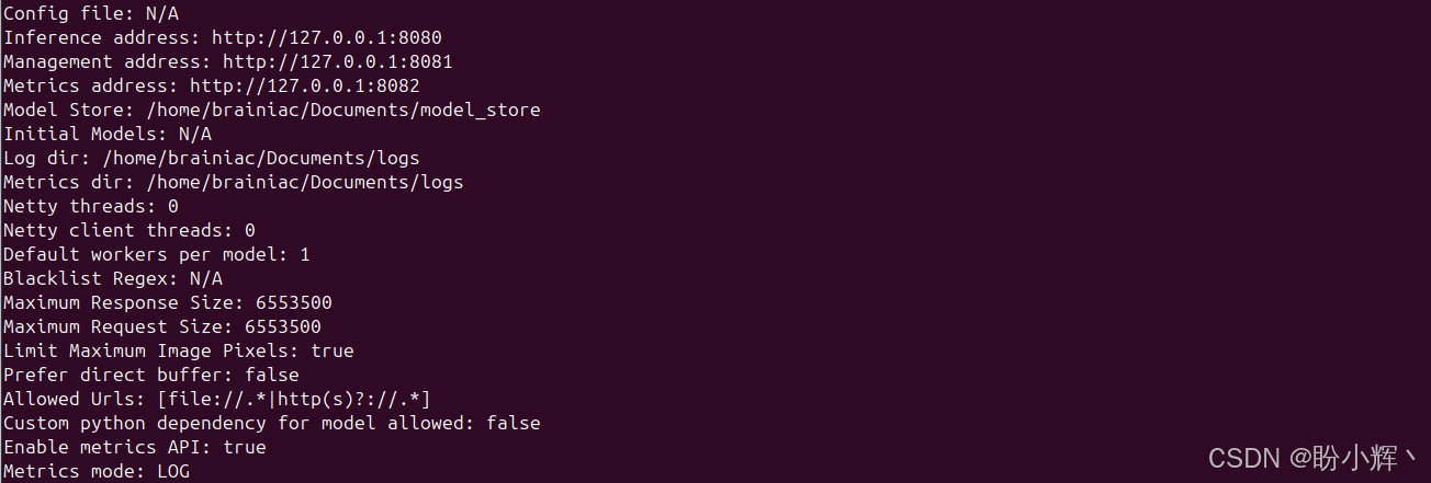 (5) 最后通过以下命令启动 TorchServe 模型服务器: