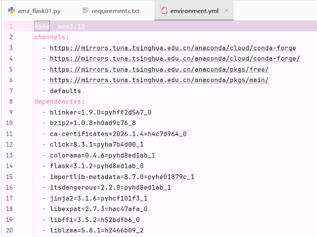 3)导出当前激活环境的完整依赖(包括 conda + pip 包)