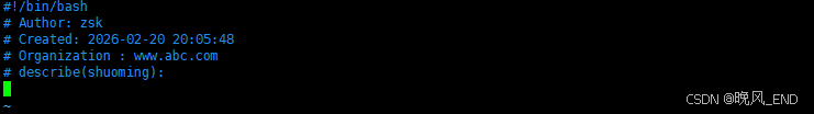 autocmd BufNewFile *.sh 0put =\"#!/bin/bash\n# Author: zsk\n# Created: \".strftime(\"%Y-%m-%d %H:%M:%S\").\"\n# Organization : www.abc.com\n# describe(shuoming): \"|normal G