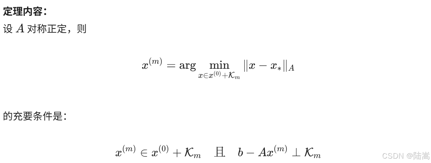 欲求 Krylov 正交空间中 A A A 范数意义下的最佳逼近,根据定理:
