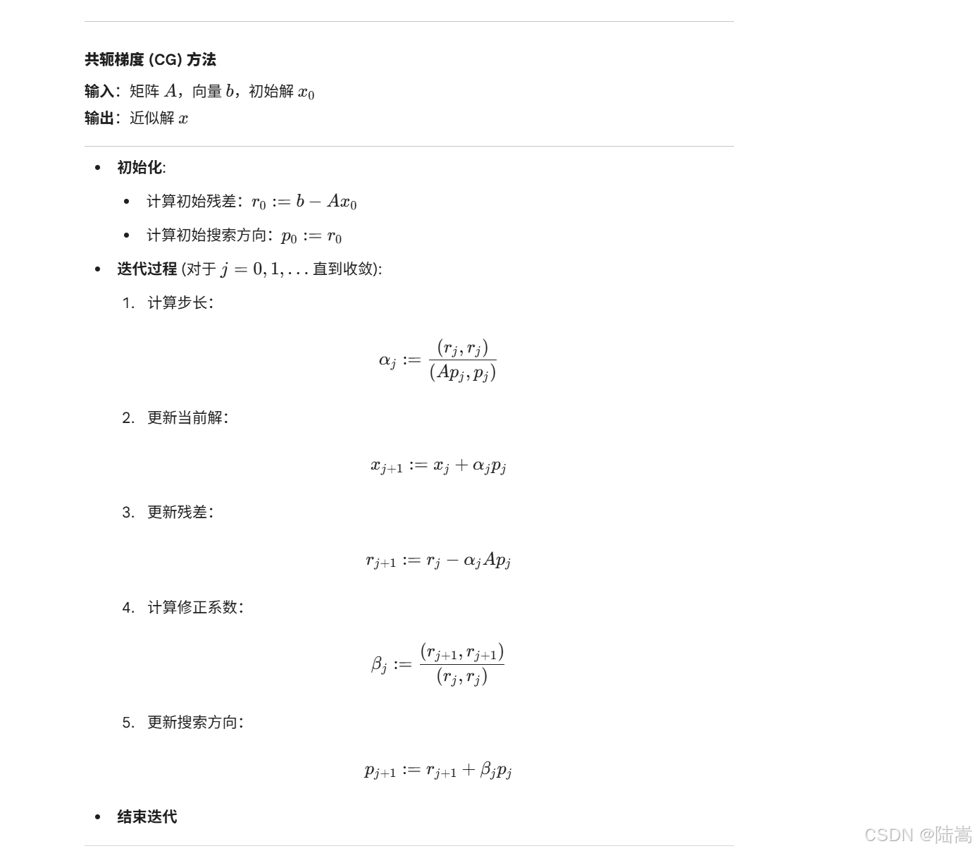 - [CG 方法(共轭梯度)的数学推导及其算法](#CG 方法(共轭梯度)的数学推导及其算法)