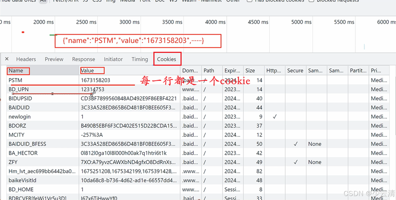 2、Cookie数据格式: 键值对组成(python中的字典)。