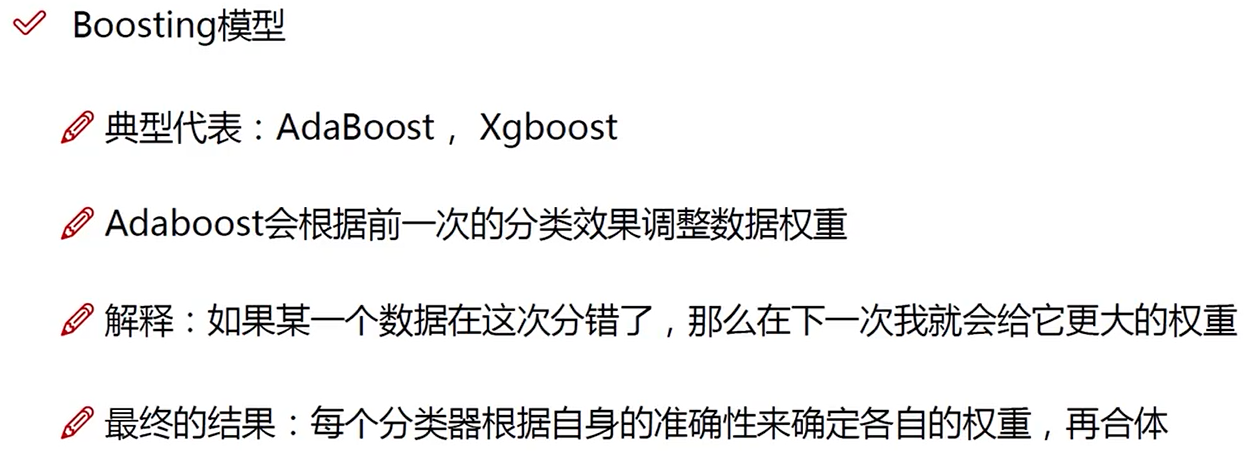 AdaBoot算法会把上一次预测错的数据的权重增大。