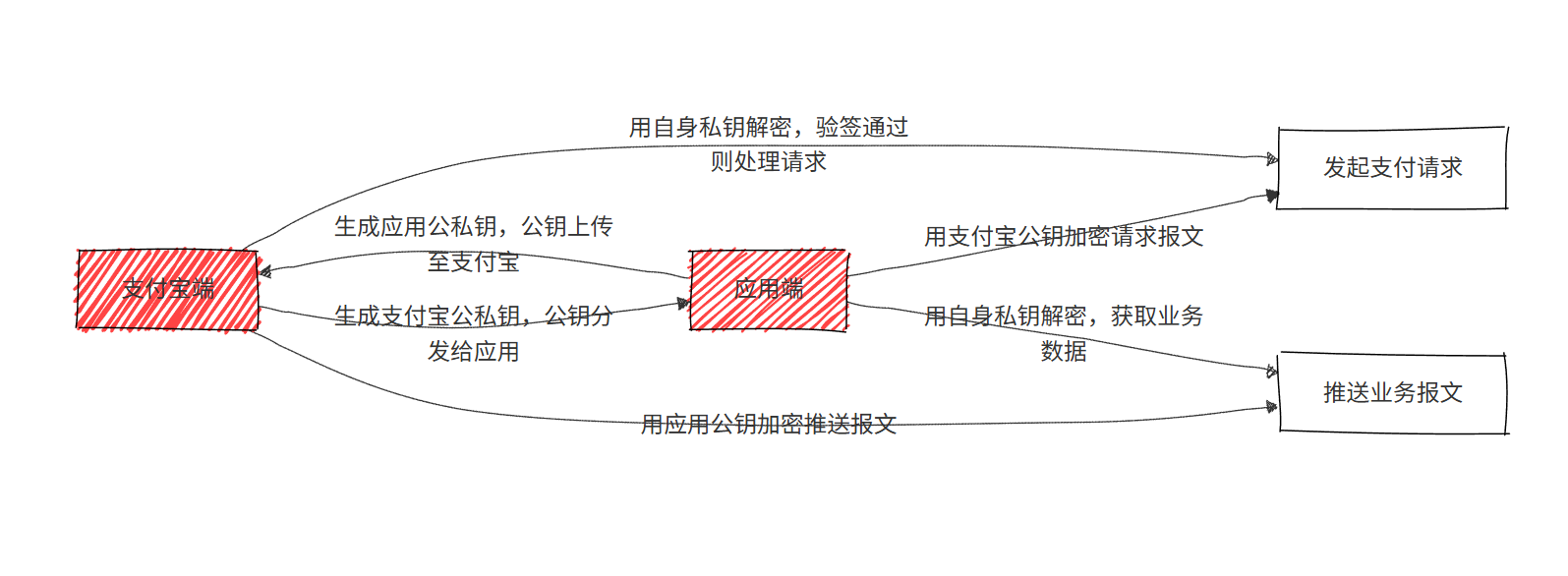 采用RSA 非对称加密 ,且为双向非对称加密 安全机制,保障业务请求报文的安全性,密钥生成需使用支付宝官方密钥生成工具 (https://opendocs.alipay.com/common/02kipl)。