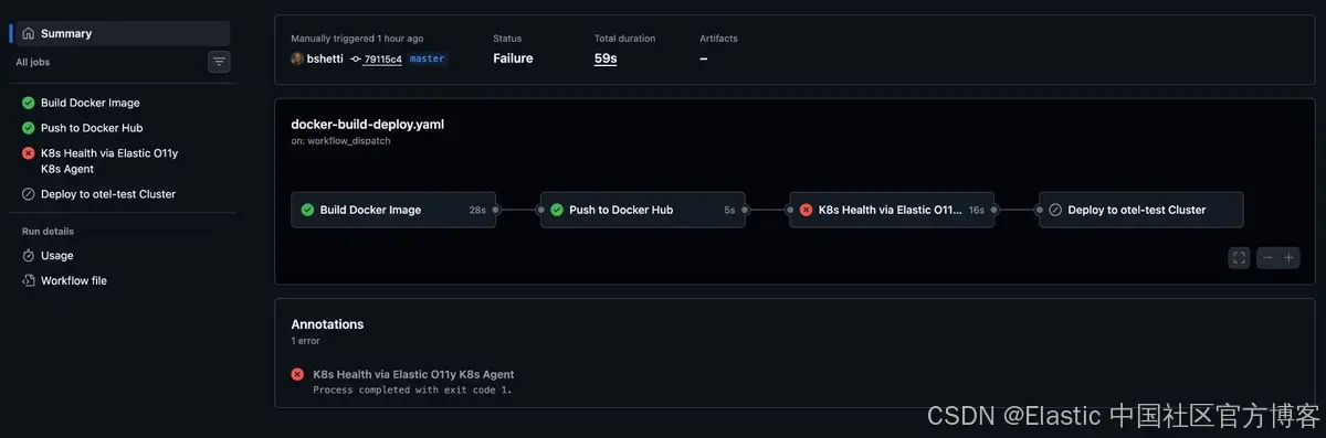 - 通过 Elastic O11y K8s Agent 检查 K8s 健康 (16s) --- 失败