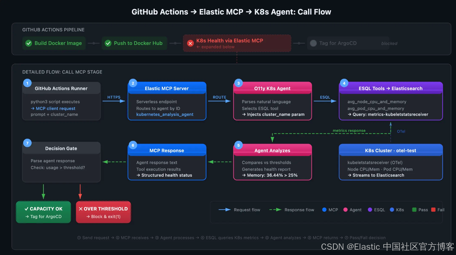 使用 Elastic MCP Server 部署 agentic CI/CD 门控。将 AI agents 集成到 GitHub Actions 中,通过 O11y 监控 K8s 健康状况,并提升部署可靠性。