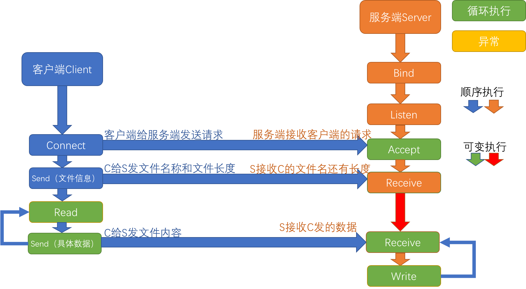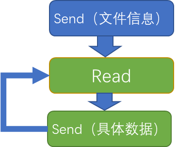 为了规避问题,我们可以尝试动动小脑瓜想一想,怎么去设计这个流程,非常简单,客户端首先发送文件的名称,然后服务端接收名称,客户端等服务端接收完成后继续发送文件的长度,服务端接收,然后客户端再发送文件的具体内容,服务端按照顺序读取字节(可以定义一个块为多少比如8KB就行)