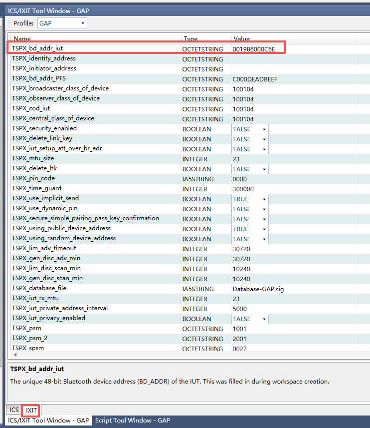 Bluetooth device address of the IUT