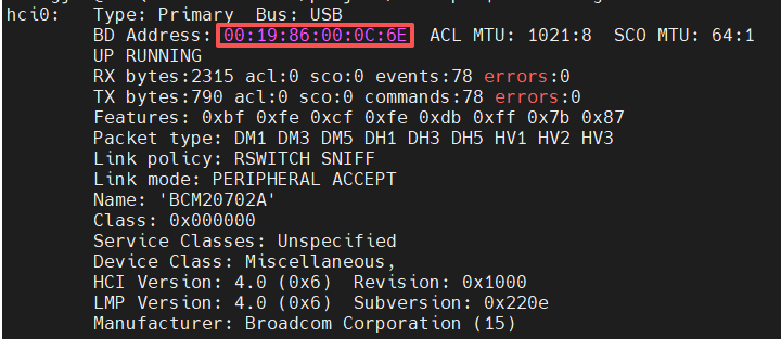 [-l LOCAL_ADDR [LOCAL_ADDR ...]] [-a BD_ADDR]