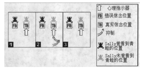 错误信念接近愿望任务,即标准错误信念任务,如"Sally-Anne"任务。另外一个是"Sally-青蛙"任务,该任务描述为:Sally看到青蛙在红色的盒子里,然后离开。她不在的时候青蛙跳到了绿色的盒子里。问儿童:Sally回来后会去哪个颜色的盒子找青蛙?