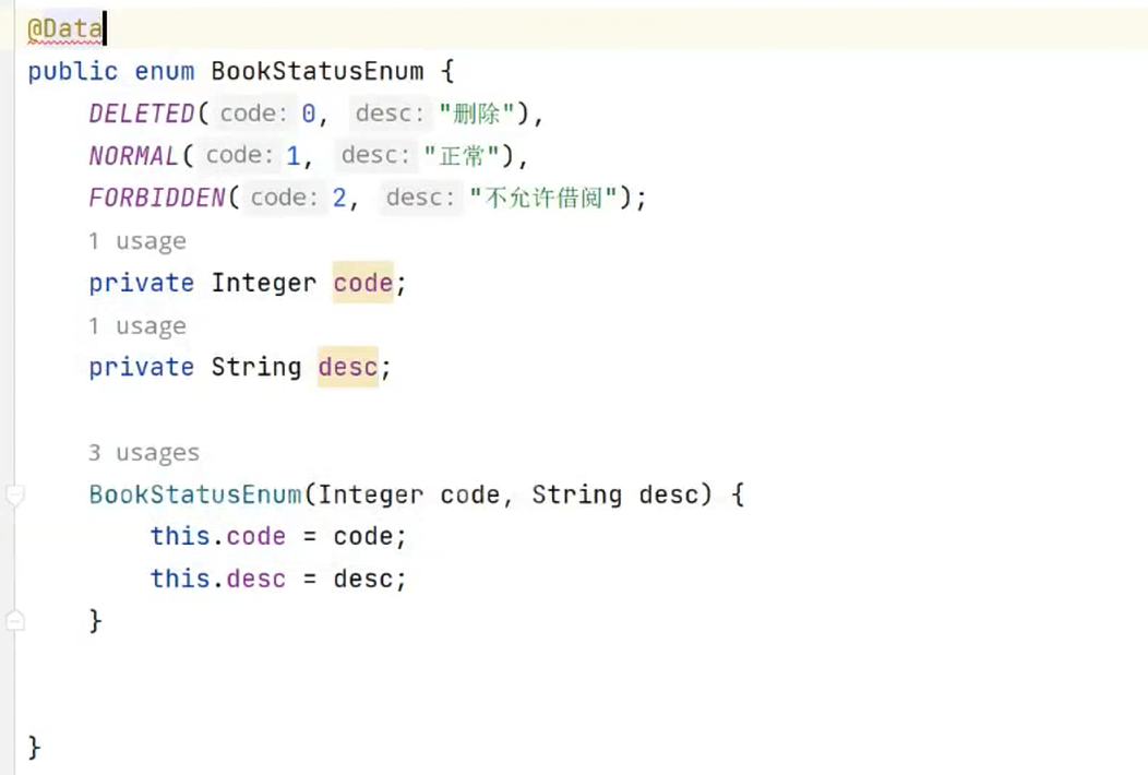 - [枚举类型,无法使用 @Data](#枚举类型,无法使用 @Data)